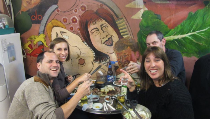 After a long day of sightseeing, we wanted to stay around us for dinner (see, I told you it’s good to be in an area with good nightlife!). Dave and I scoped out the dinner situation and found a cool restaurant where they cook stir-fry for you right at your table. The South Koreans seem to be all about the cook-at-your-table situations. The food was delicious and I was just happy that I didn’t have to be the one doing the cooking this time.